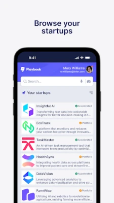 Whether your organization has already been introduced to a startup or you’re exploring new, Playbook centralizes the process enabling better decisions and stronger engagement.